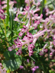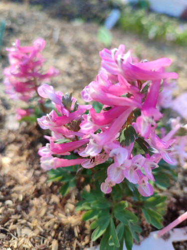 Узнаваемый сорт хохлатки. Чисто розовые с белым зевом цветки. |