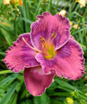 Оригинатор: D.Trimmer 2002 год. Диаметр : 11 см. Высота: 52 см. Ранне-средний Светло-персиковый тон почти перекрывается огромным клюквенно-красным глазом и каймой. |