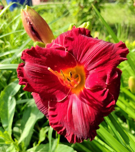 Оригинатор: Petit 2002г. Диаметр цветка: 15см. Высота: 68см. Средний. Насыщенный бархатный красный с зелёным горлом. Очень яркий. Пожалуй лучший красный в моём саду. |