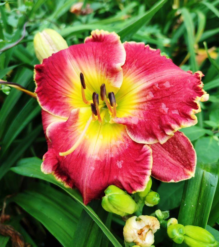 Оригинатор: Smith 2005г. Размер цветка: 14см. Высота: 75см. Ранне-средний срок цветения Красный с маленьким водяным знаком и ярким зелёным горлом, золотистая кайма, до 70 бут., душистый |