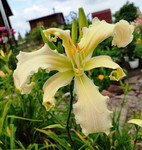Оригинатор: Gossard 2004г. Диаметр цветка: 20см. Высота: 91см. Средне-поздний Почти белый спайдер, горло жёлто-зелёное. Очень хорош!!! |