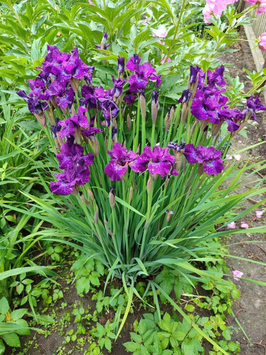 Стандарты очень темные фиолетово-бордовые, фолы очень темные фиолетово-бордовые с черным отливом, полупарящие до горизонтальныой формы. Очень бархртистые! Очень круглая форма, фолы могут перекрываться.. Небольшой белый сигнал с синим подсветом.